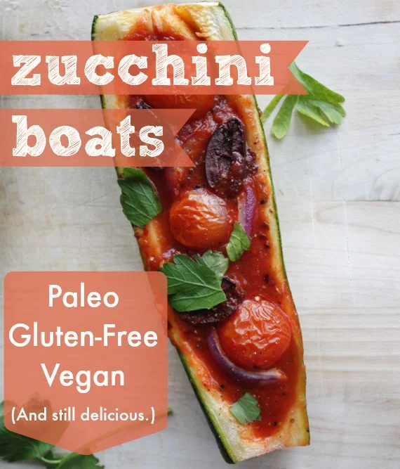 Zucchini halves are a healthy, sturdy base to fill with tomato sauce and whatever toppings you like. Olives, onions, tomatoes and fresh herbs make a fantastic light bite, but feel free to get creative. After all, it's whatever floats your boat!